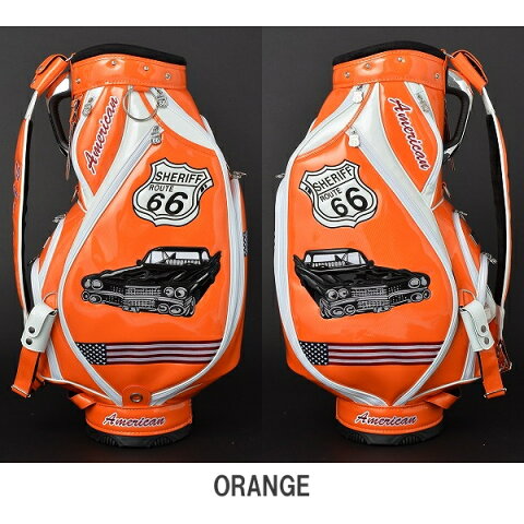 ◇カラー :ORANGE、NAVY ◇サイズ :9.5型 47インチ対応 ◇重量 :約4.2Kg ◇口枠 :5分割セパレーター付◇素材 :高級エナメル ◇その他 :ネームプレート付属 (ネーム刻印は致しておりません) ※ご注意:モニターの発色の具合によって実際のものと色が異なる場合がございますSHERIFF シェリフ SFA-013 アメリカンシリーズ 3点式キャディバッグ 【カーボン調高級エナメル素材】 【アメリカンシリーズ・アメ車ver.】は一番人気のシリーズ! パッと見で違いを感じるアメ車の特徴をキャディバッグ全体でも表現しました。